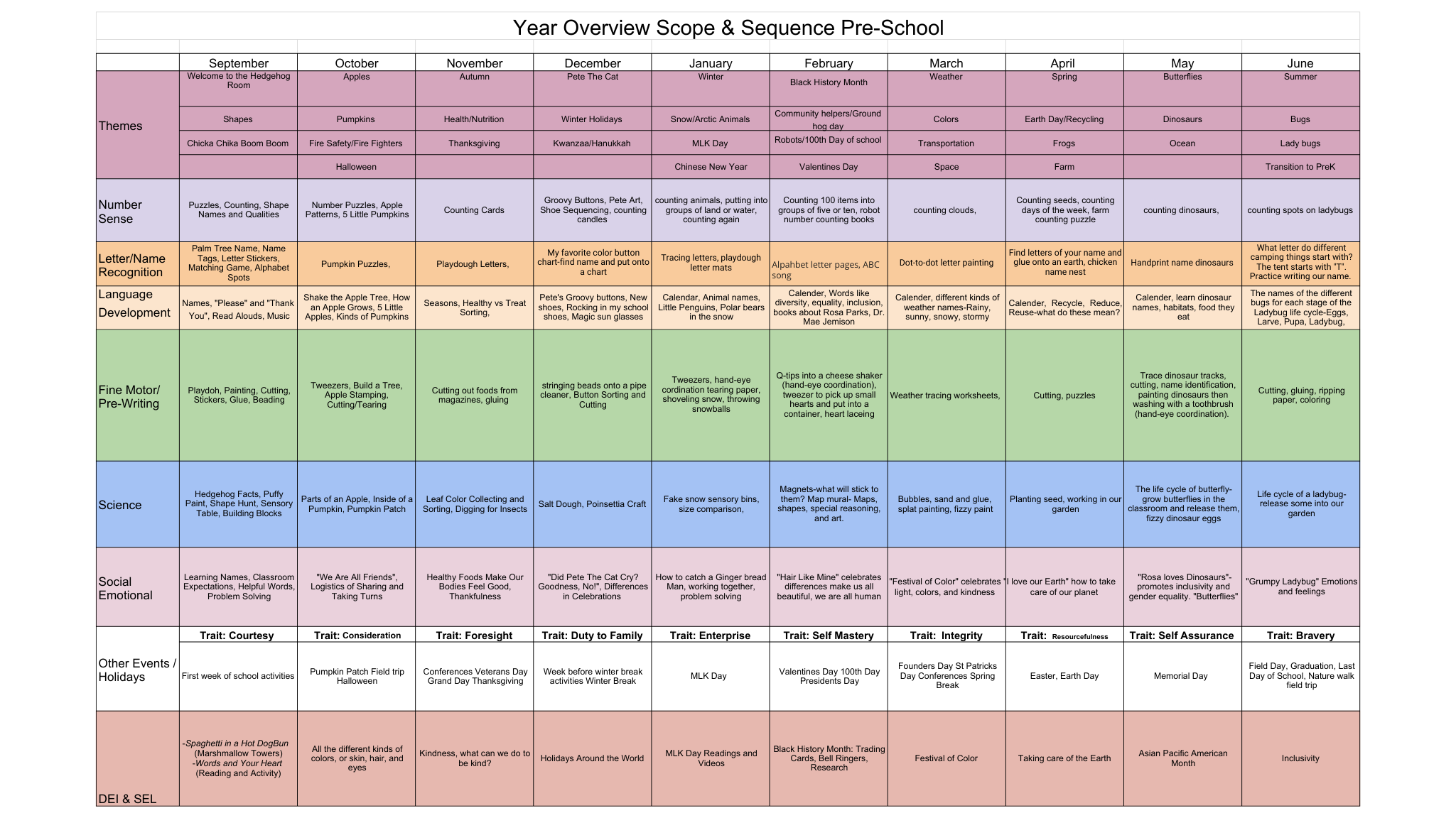 Science education in Preschool and Pre-K is integrated throughout all parts of the day as students explore and create. Students are encouraged to ask questions, make observations, express curiosity, participate in hands-on learning and simple experiments, and share discoveries. We will learn about animals, plants, space, body parts, seasons, weather, food, life cycles, dinosaurs, the ocean, holidays, colors, helpers and so much more! We also spend a significant part of our day outdoors. During this time we get to explore, play, and develop our big muscles and we enjoy both a covered playground as well as a large uncovered play area every day.