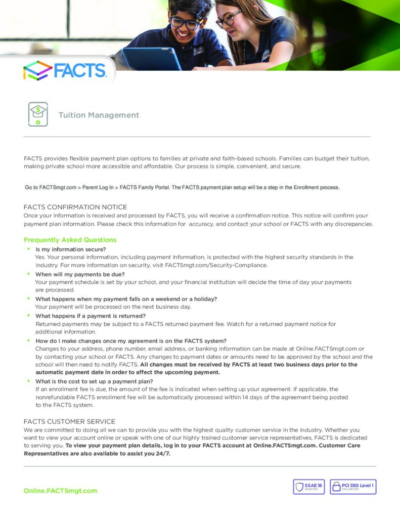 FACTS is a tuition management company Ashbrook uses for tuition and other payments.